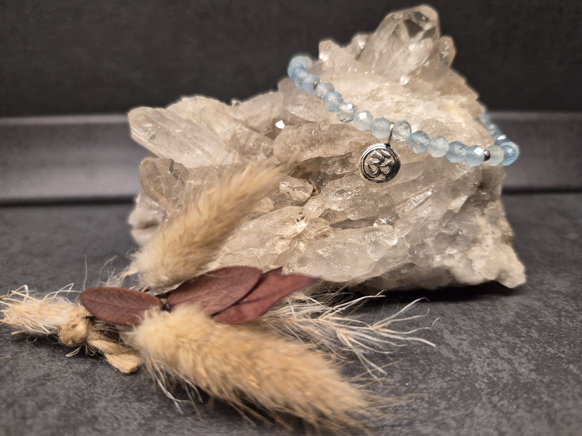Aquamarin Armband "OM" Silber - Ruhe, Klarheit und sanfte Stärke