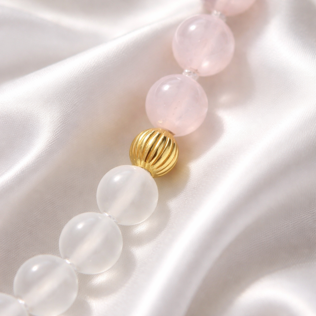 Mala Pure Love - Rosenquarz & matter Bergkristall - Herzöffnung, Selbstliebe und Harmonie