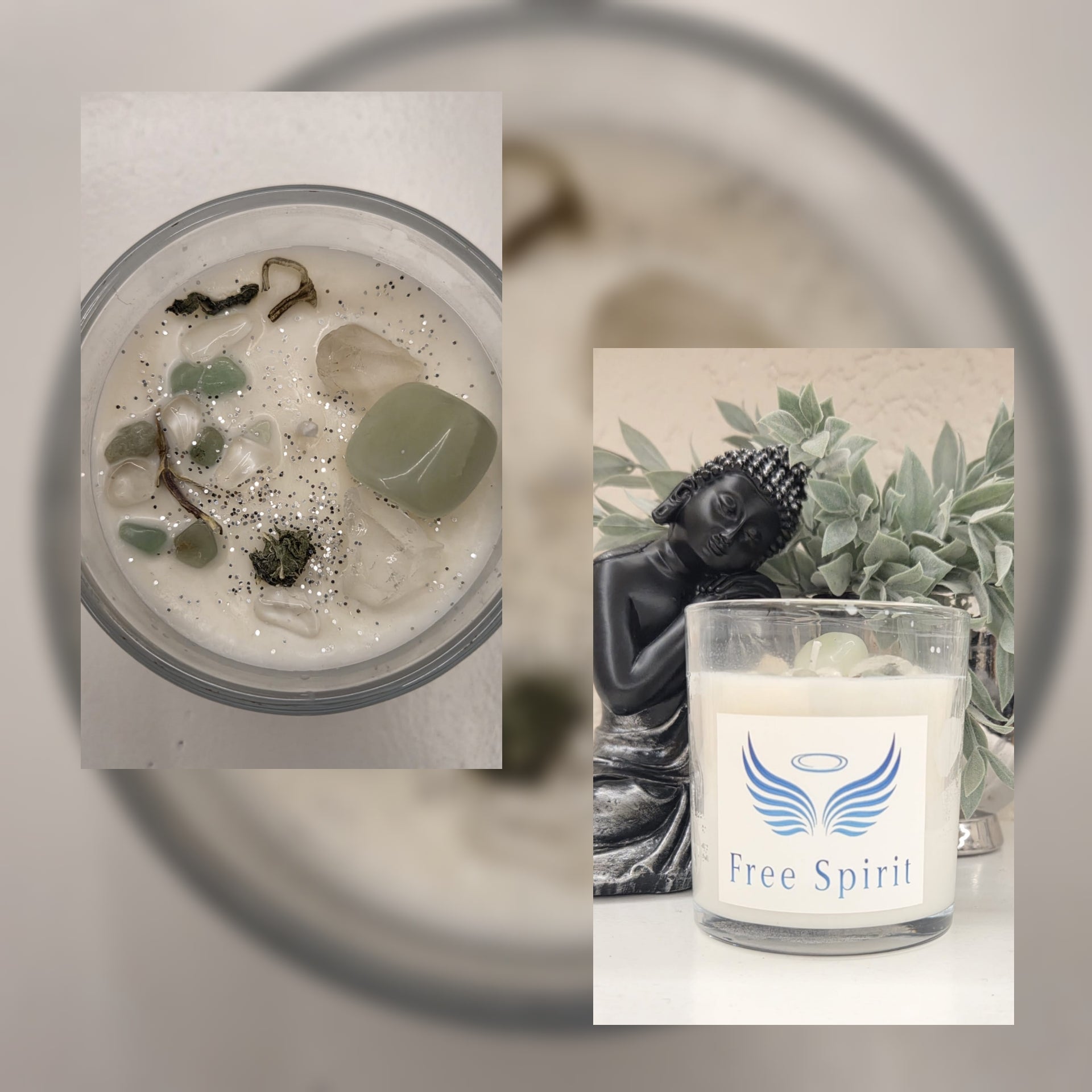 Mystic Meadow - Edelsteinkerze Jade & Bergkristall